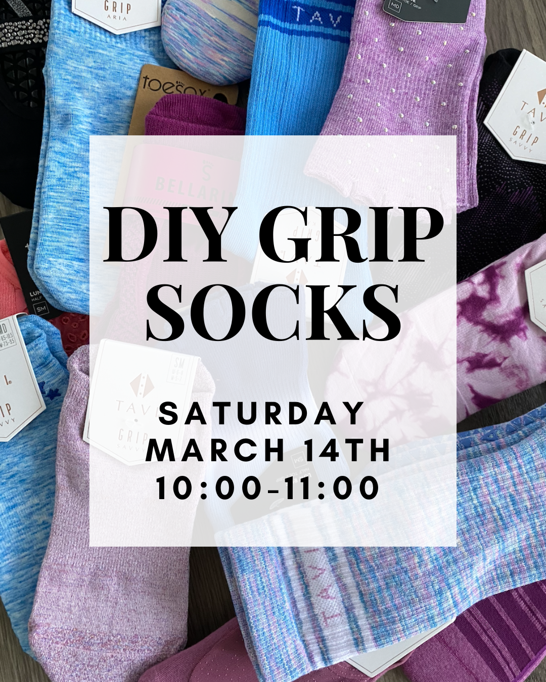 Get creative and design your own grip socks! This laid-back Saturday morning event includes a 30 minute pilates workout, followed by a DIY grip sock workshop - all materials included. Take your grip socks home to keep and then wear to class!